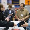 Rhonda S. Walker, alumni relations specialist, prepares to engage Thursday's visitors to the horticulture booth ... ... while D. Michael Damiani, instructor of aviation maintenance, does likewise as a knowledgeable ambassador for his academic school.